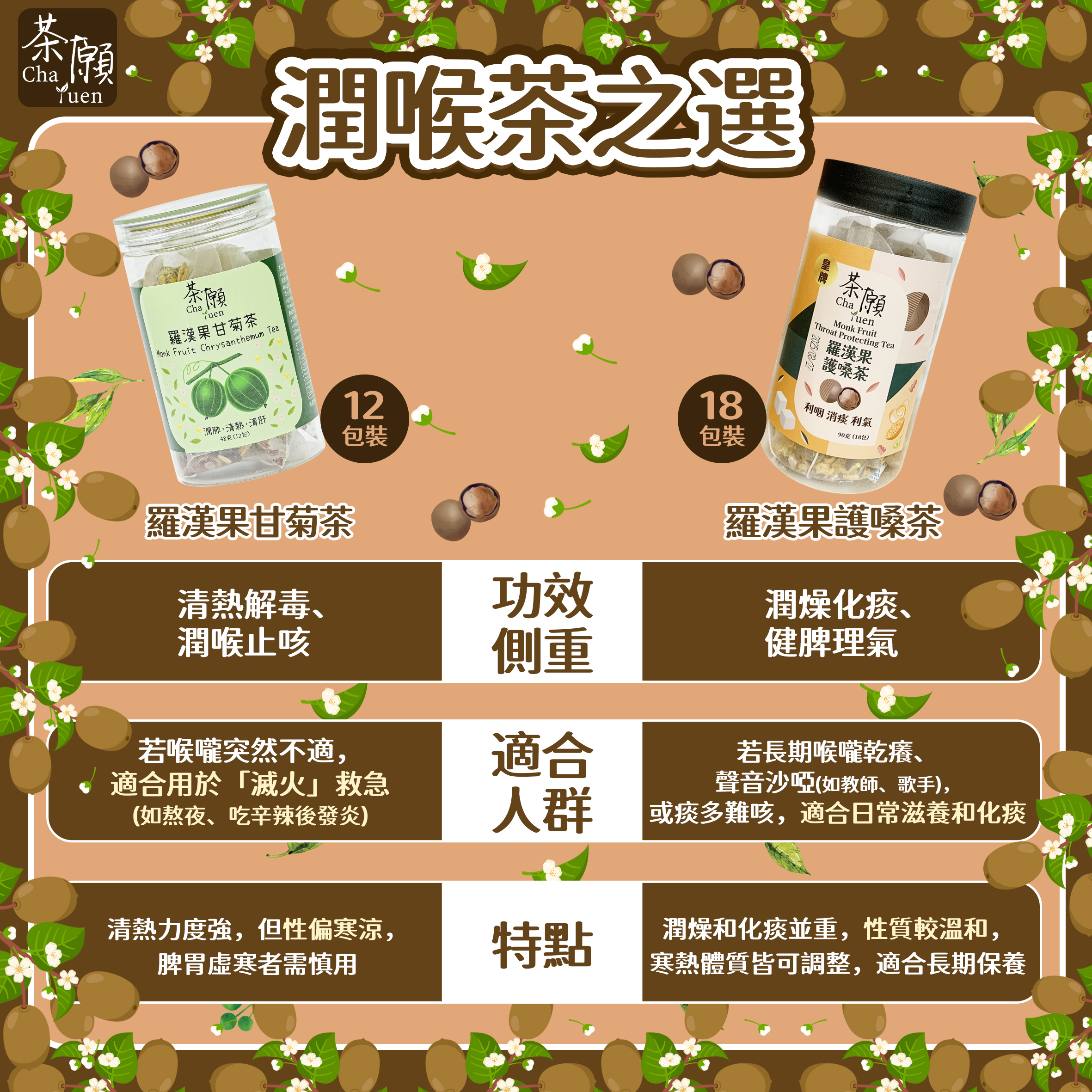 Cha Yuen - Monk Fruit Throat Protecting Tea (50 packs)