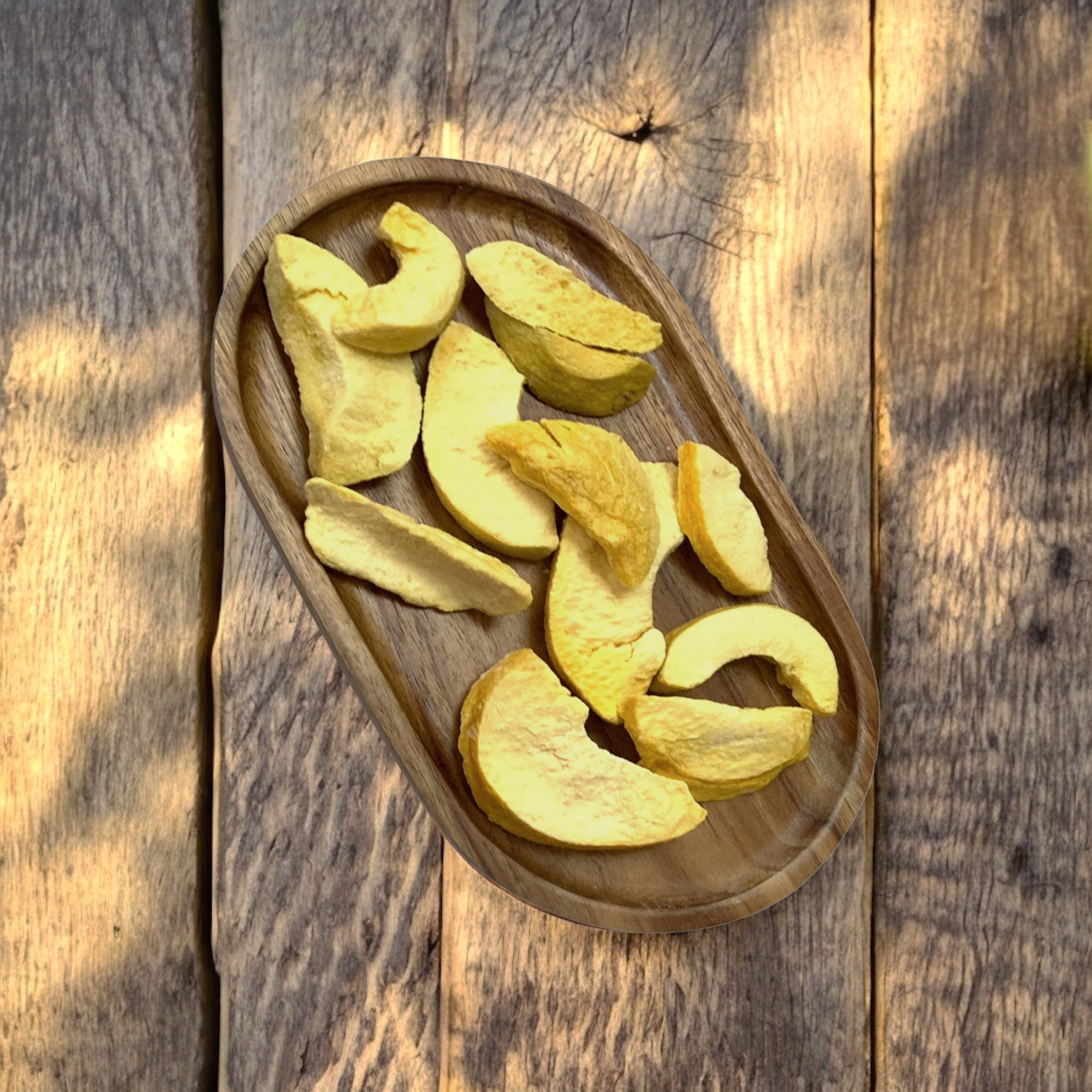 2. 酥脆的口感:水分被升華後,水果組織形成海綿狀多孔結構,口感輕盈、酥脆,與新鮮或傳統烘乾水果截然不同;
